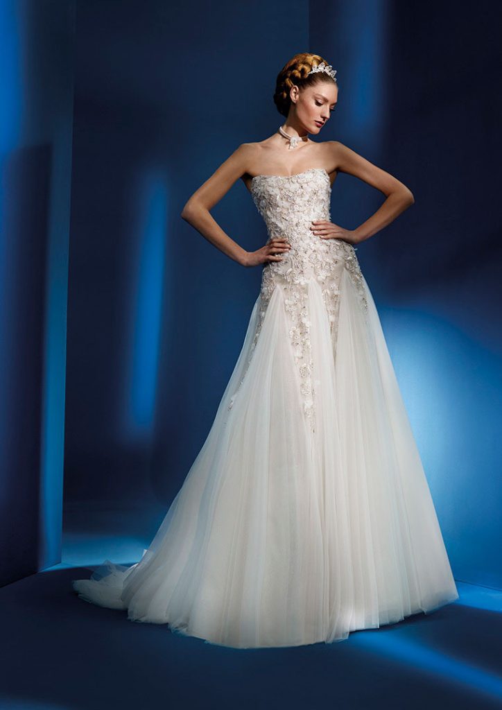 Partiendo del legendario «Salón de los Espejos» de Versalles y del símbolo real de la «flor de lis«,  Alessandra Rinaudo ha diseñado los vestidos con deslumbrantes tejidos italianos, encajes franceses y pedrería y bordados elaborados a mano que recuerdan a la época, pero actualizados con innovaciones modernas de moda y sastrería.